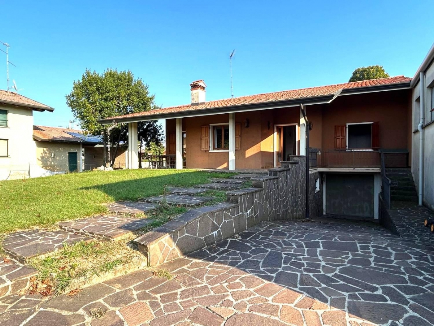 VILLETTA TRICAMERE ACCOSTATA AD UN LATO - OTTIMO PREZZOA Talmassons, proponiamo in vendita una villetta singola di fine anni '70, disposta su due livelli: piano terra e piano interrato. L'immobile è accostato su di un lato ad un capannone adibito principalmente a deposito, ma conserva comunque la propria privacy ed indipendenza. La casa si presenta in buone condizioni e le finiture sono principalmente risalenti all'epoca di costruzione. Il fabbricato è tranquillamente abitabile fin da subito cosù da risultare ideale per chi cerca una residenza che possa essere personalizzata o ristrutturata nel tempo. Al piano terra, rialzato rispetto la strada, troviamo: l'ingresso, la comoda cucina separata, il soggiorno spazioso e con accesso al porticato esterno, il disimpegno notte, tre camere ed un bagno finestrato con vasca; al piano interrato troviamo: il garage, la centrale termica, un bagno con doccia ed ulteriori tre stanze. Il tetto è stato recentemente ripassato e la caldaia è stata sostituita da pochi anni. La zona giorno è ben distribuita, con spazi ampi e luminosi, mentre il piano interrato offre possibilità di utilizzo per magazzini, cantine o taverne. Un'opportunità unica ad un prezzo veramente interessante per chi cerca una casa indipendente con ampi margini di personalizzazione, in una zona tranquilla ma, allo stesso tempo, ben servita.